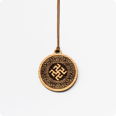 Подвеска пропитана вытяжкой древесного масла. Изделие можно использовать как для ношения на груди, так и как подвеску в транспортное средство.