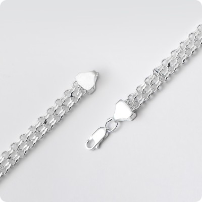 Браслет из серебра с плетением Двухполосный Бисмарк является образцом утонченного и изящного украшения, которое могут носить представители обоих полов в независимости от возраста. Ажурное и воздушное плетение делает цепочку идеально подходящей для девушек, но мужчинам со светлой кожей также можно дарить этот браслет.